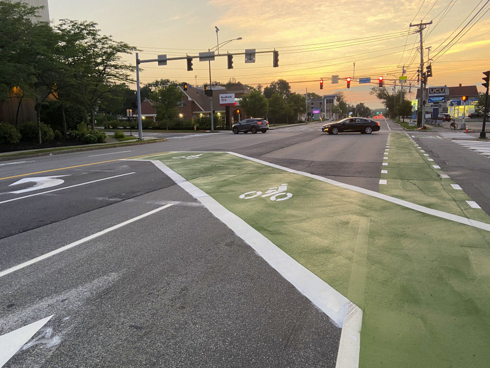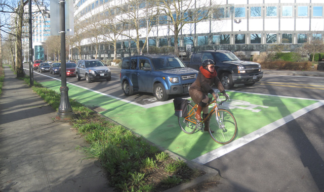 Is the bike box swerve accommodated in Maine traffic law or Portland ordinances? I don’t think so.
