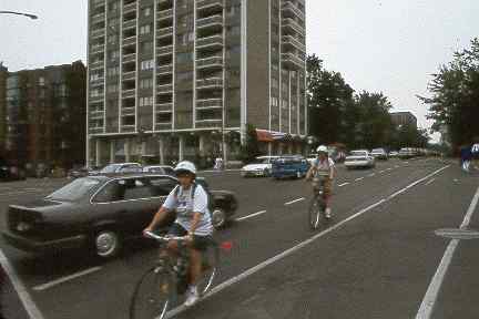 Another conflict between right-turning traffic and bicyclists traveling opposite the normal flow on the sidepath.